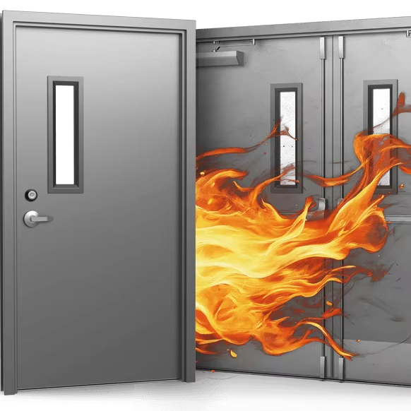 Puertas de Acero Resistentes al Fuego con Aislamiento Acústico para Uso Exterior en Supermercados y Escuelas.