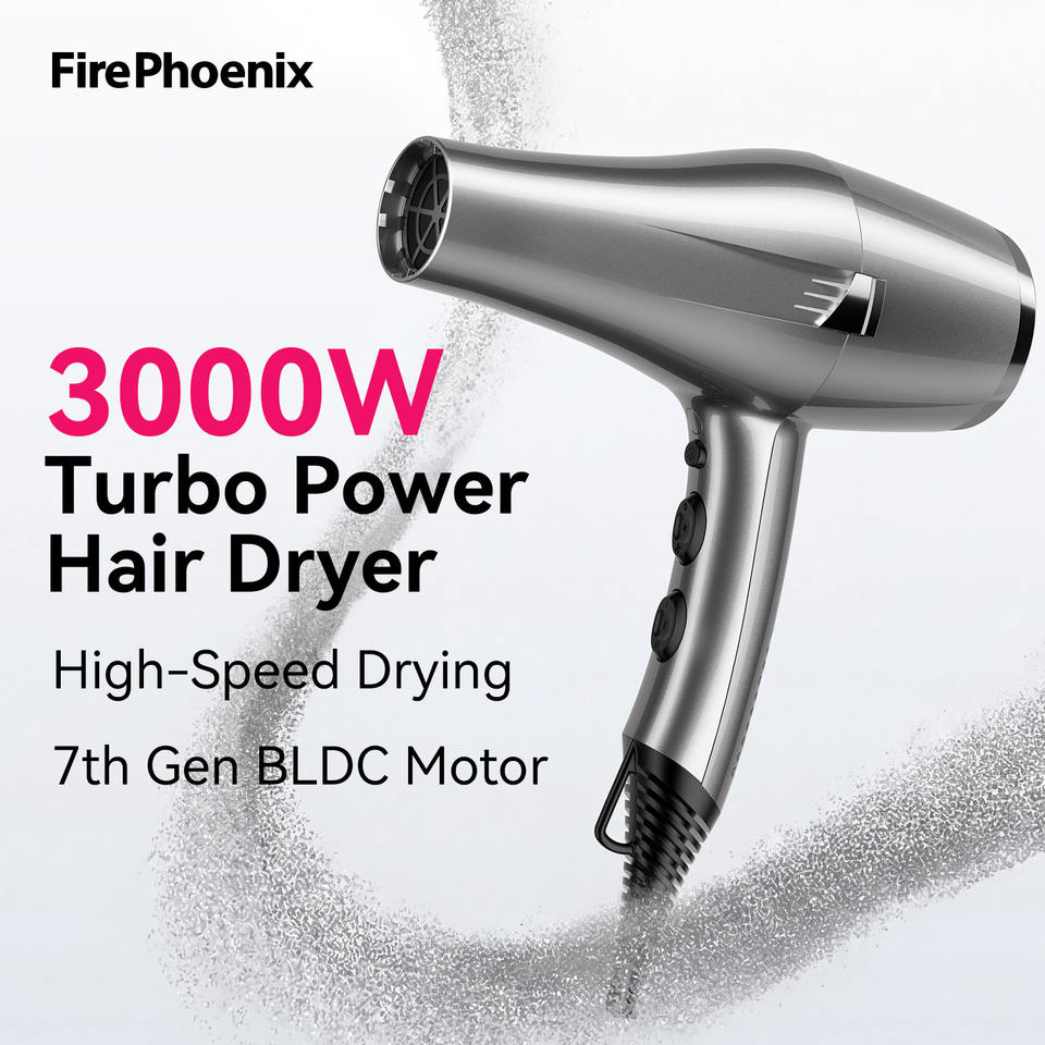 Secador de Pelo de Alta Velocidad FirePhoenix F1 Pro Max, Flujo de Aire de 21 m/s, Motor BLDC, 3000 W, Herramienta de Peinado Iónico de Grado Profesional, 23000 RPM