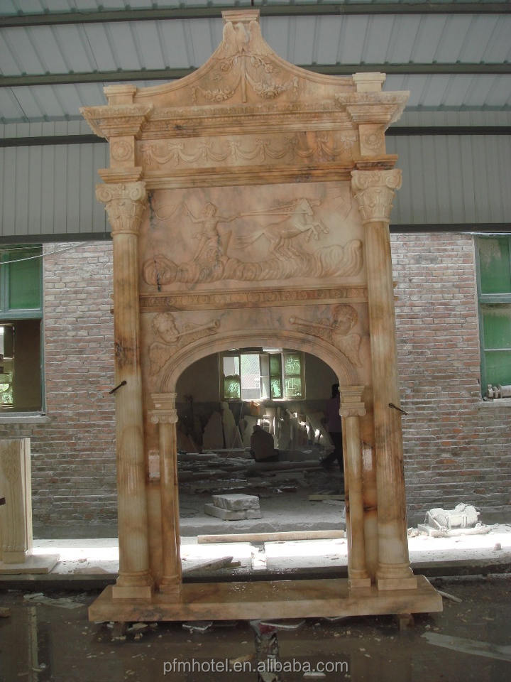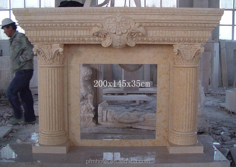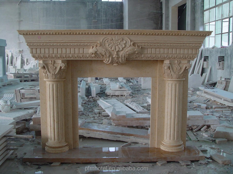 Chimenea con columna Estilo romano Chimeneas de mármol beige Mantel