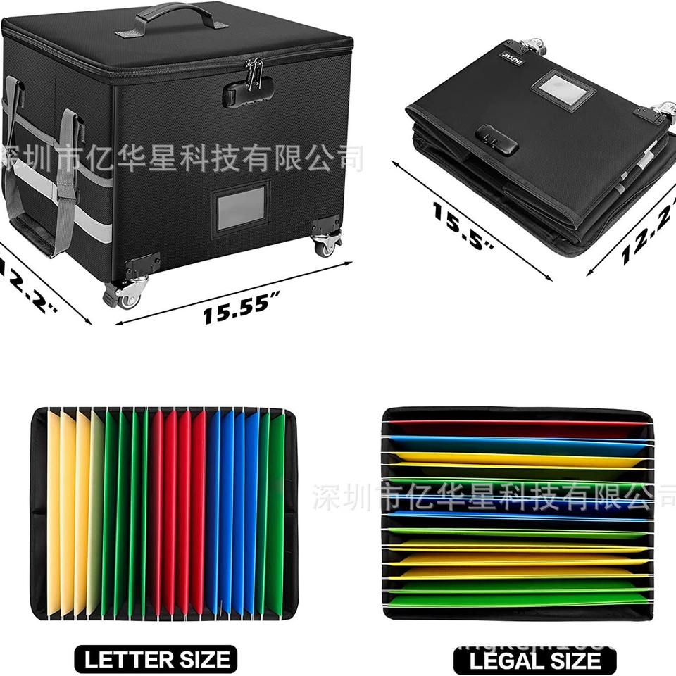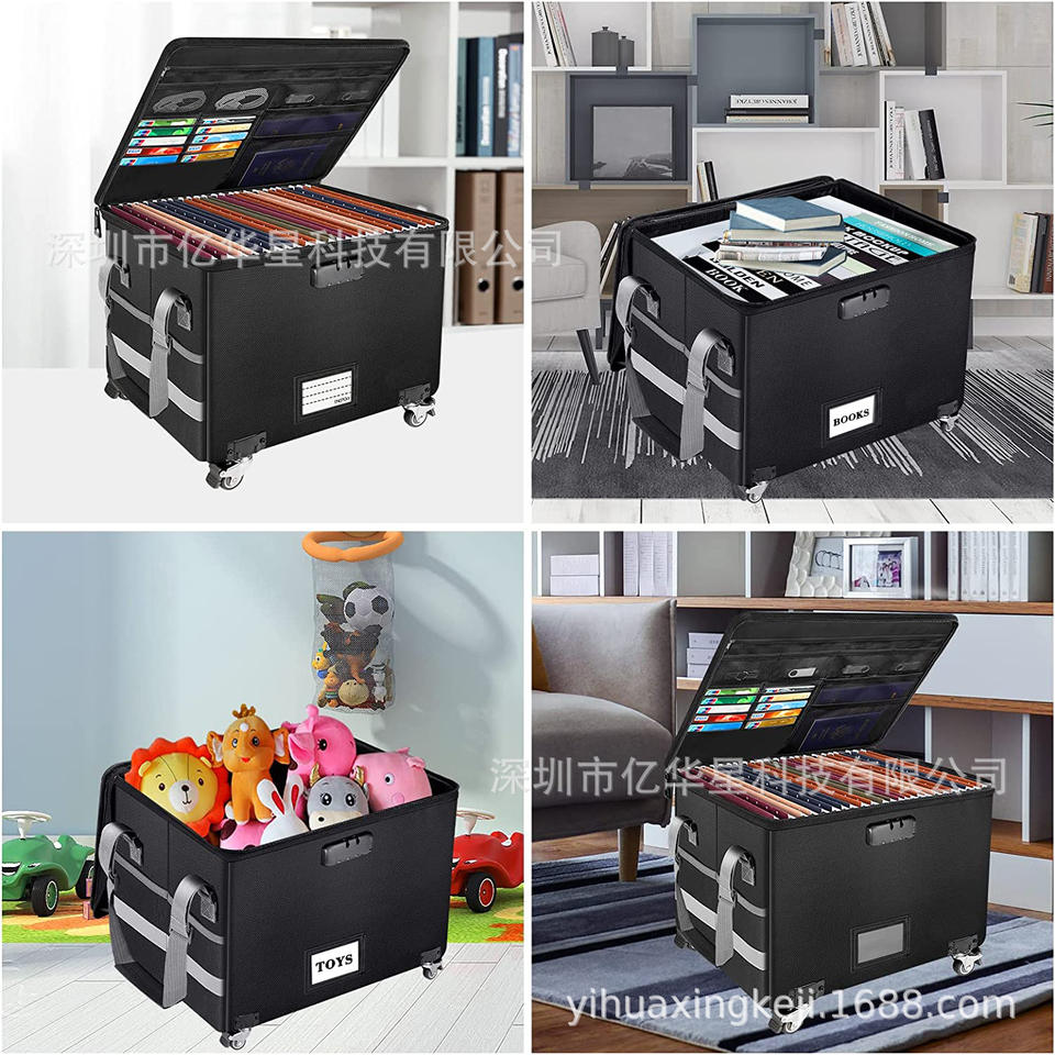Caja para documentos ignífuga, 39,5x31x25,5 cm, almacenamiento con ruedas para archivos y contratos de oficina, resistente y duradero, color negro