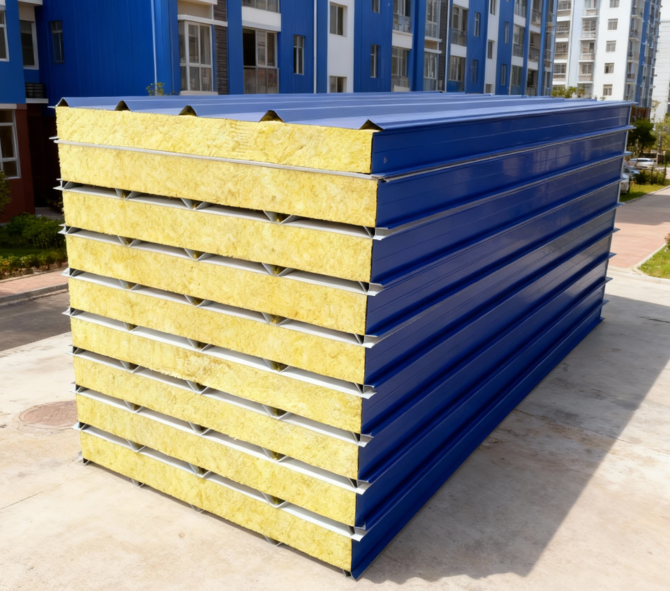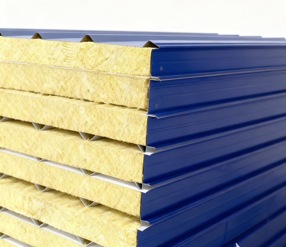Panel sándwich de lana de roca ignífugo para pared y techo Material de construcción Aislamiento acústico térmico