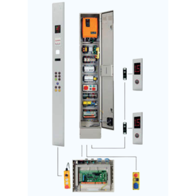 Firmak Paquete Completo Elevador Colección Patrimonio Dorado Espejo de Oro Acero Inoxidable y Paneles Marrón Clásico