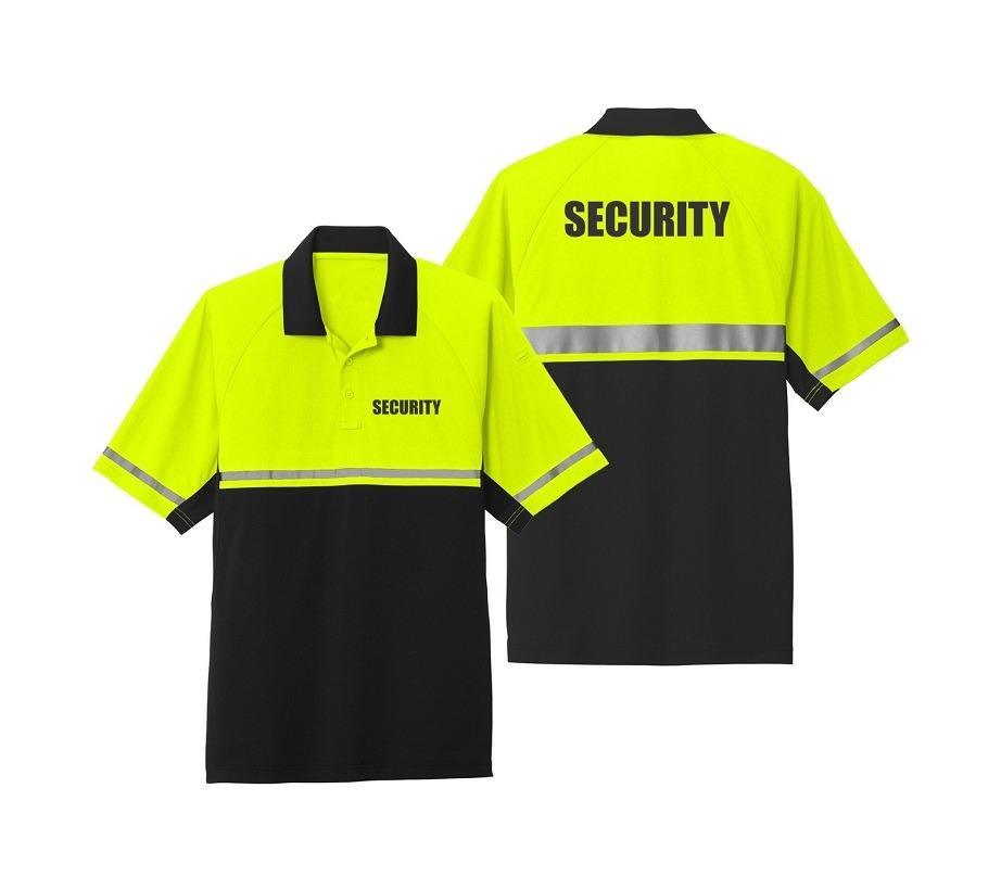Polo de patrulla de bicicleta de dos tonos de seguridad de primera clase con bolsillo con cremallera y rayas reflectantes para uso de guardia de verano