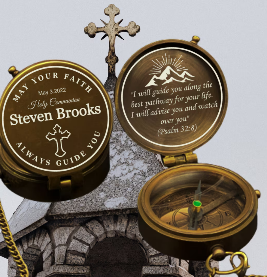 Regalo de primera comunión para niño, brújula, brújula grabada, regalos de marido de bautismo, regalo de parejas, regalos de Navidad
