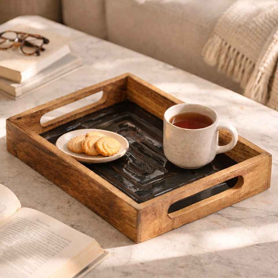 Bandeja de Servicio Rectangular de Madera de Primera Calidad, Personalizada con Diseño de Madera, para Restaurante, Grabada, para Servicio Rápido, Decorativa