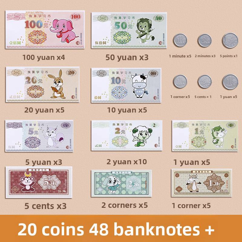 Materiales Didácticos de Matemáticas de Primaria para el Aprendizaje de la Moneda China Yuan Jiao Fen, Modelos de Billetes de Papel BM Learning