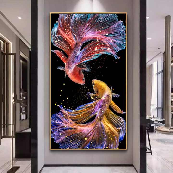 Kit de Pintura de Diamantes 5D DIY con Diseño de Pez, Color AB, Bordado de Diamantes, Mosaico, Punto de Cruz para Sala de Estar