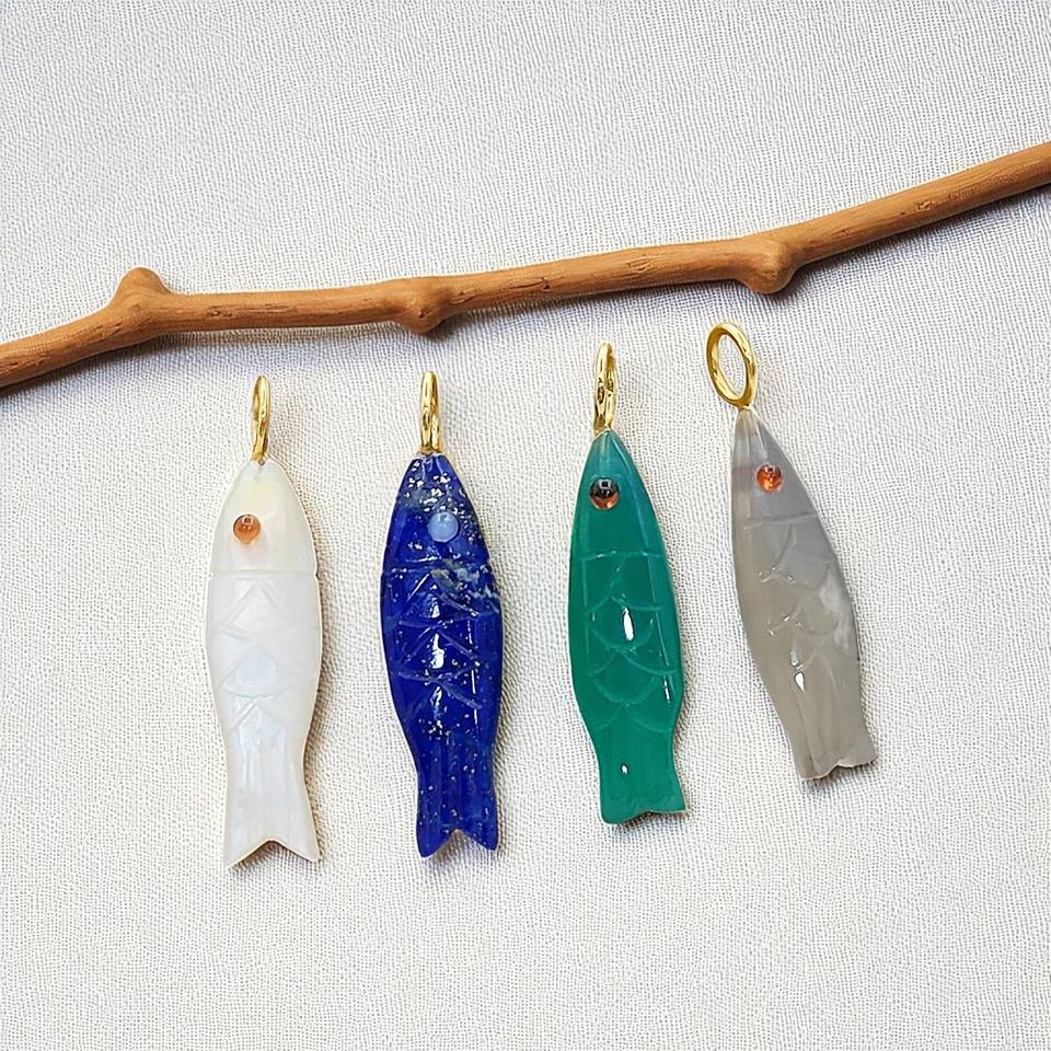 Nombre del Producto:Amuletos colgantes tallados de peces con piedra lunar gris natural