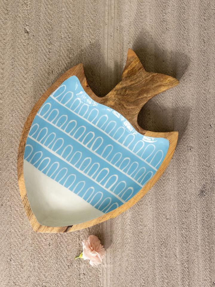 Plato de Madera Tallado a Mano con Forma de Pez