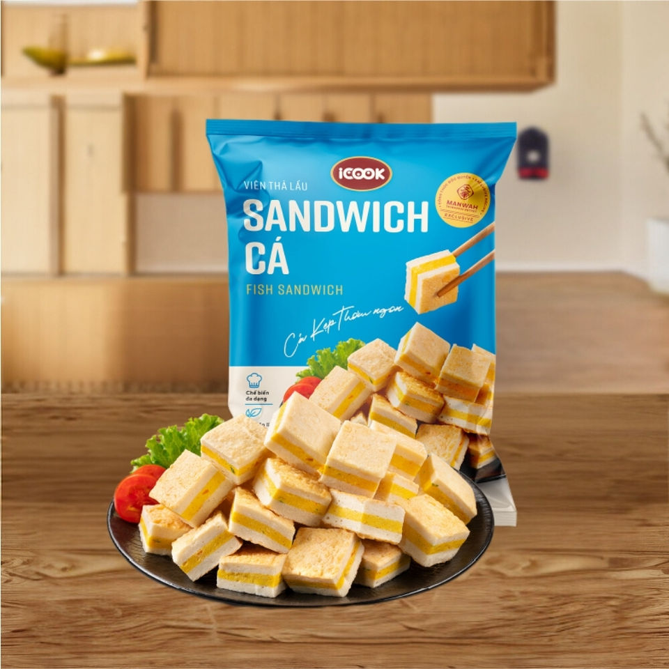 Sándwich de pescado, entrega rápida, ingredientes de olla caliente congelada, aperitivos de calidad original listos para la exportación, fabricante vietnamita