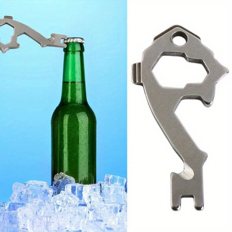 Llavero Multifuncional de Acero Inoxidable con Forma de Pez, Herramienta EDC, Destapador de Botellas, Destornillador, Mini Herramienta para Exteriores