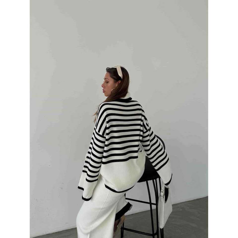 Conjunto de suéter de punto con cuello de pescador blanco talla S para mujer