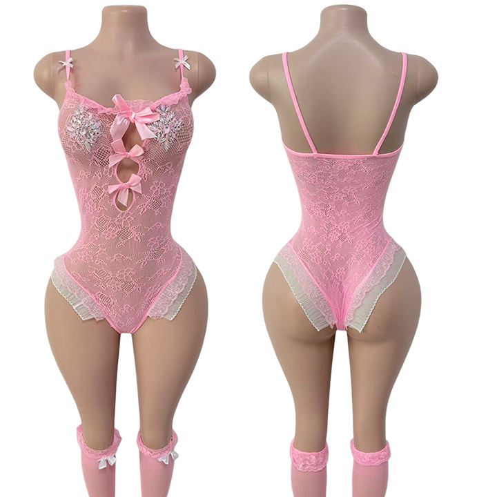 Trajes de red de pescador exóticos para stripper, medias de red con lazo, ropa para pole dance, ropa de baile exótica para stripper