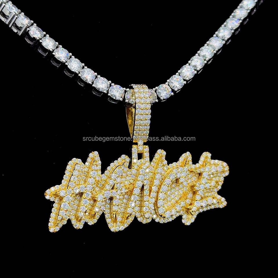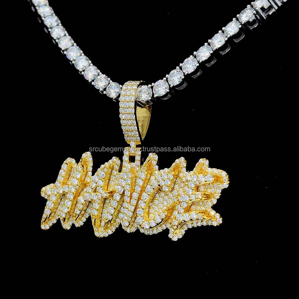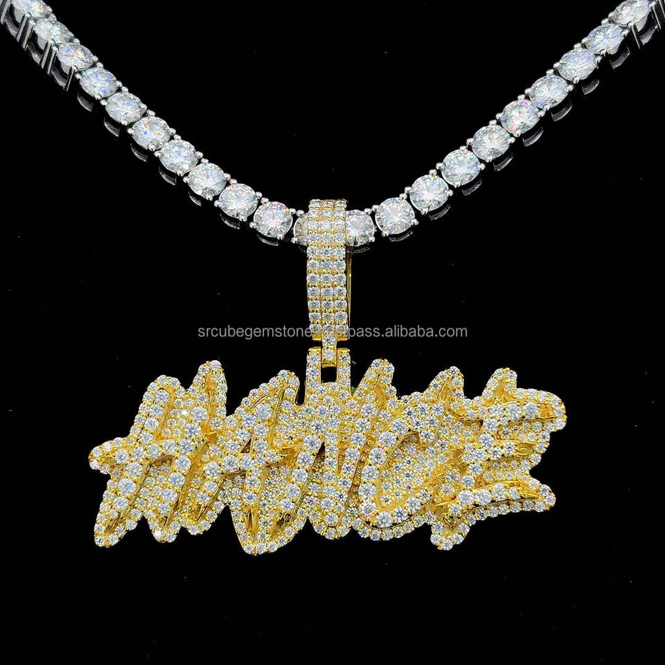 Fit Cuban Link Chain Iced Out 925 Silver Hiphop Jewelry Charm Collar inicial Custom Vvs Moissanite Letter Pendant