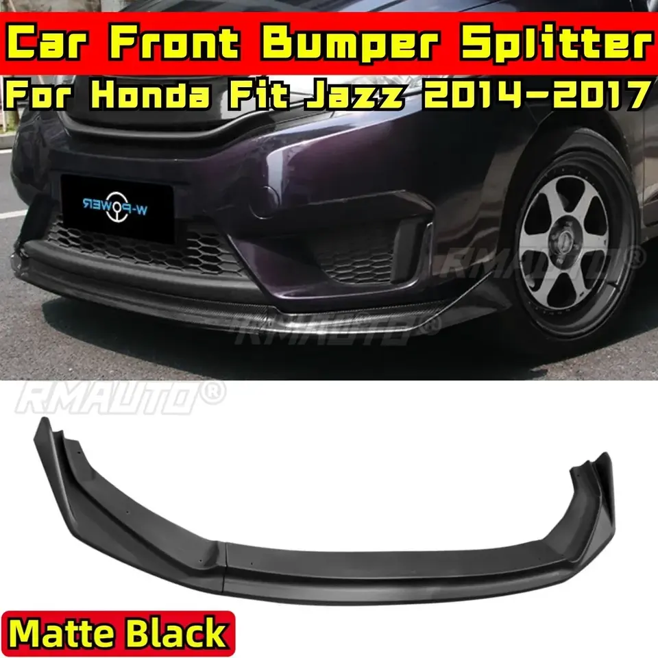 Protector de Parachoques Delantero para Honda Fit Jazz 2014-2017, Estilo Deportivo, Color Negro Mate, Accesorios para Automóviles