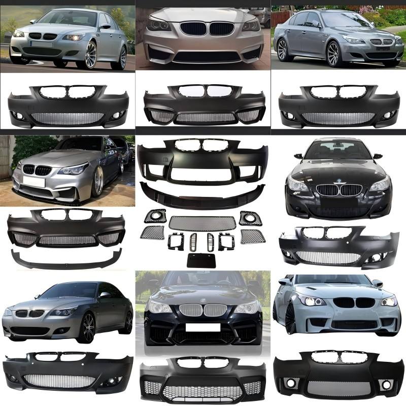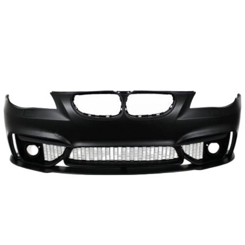 Parachoques Delantero Compatible con BMW Serie 5 E60 2003-2010, Estilo M Sport / Labio Delantero con Aletas, Superficie de Plástico Negro Brillante Tipo Piano