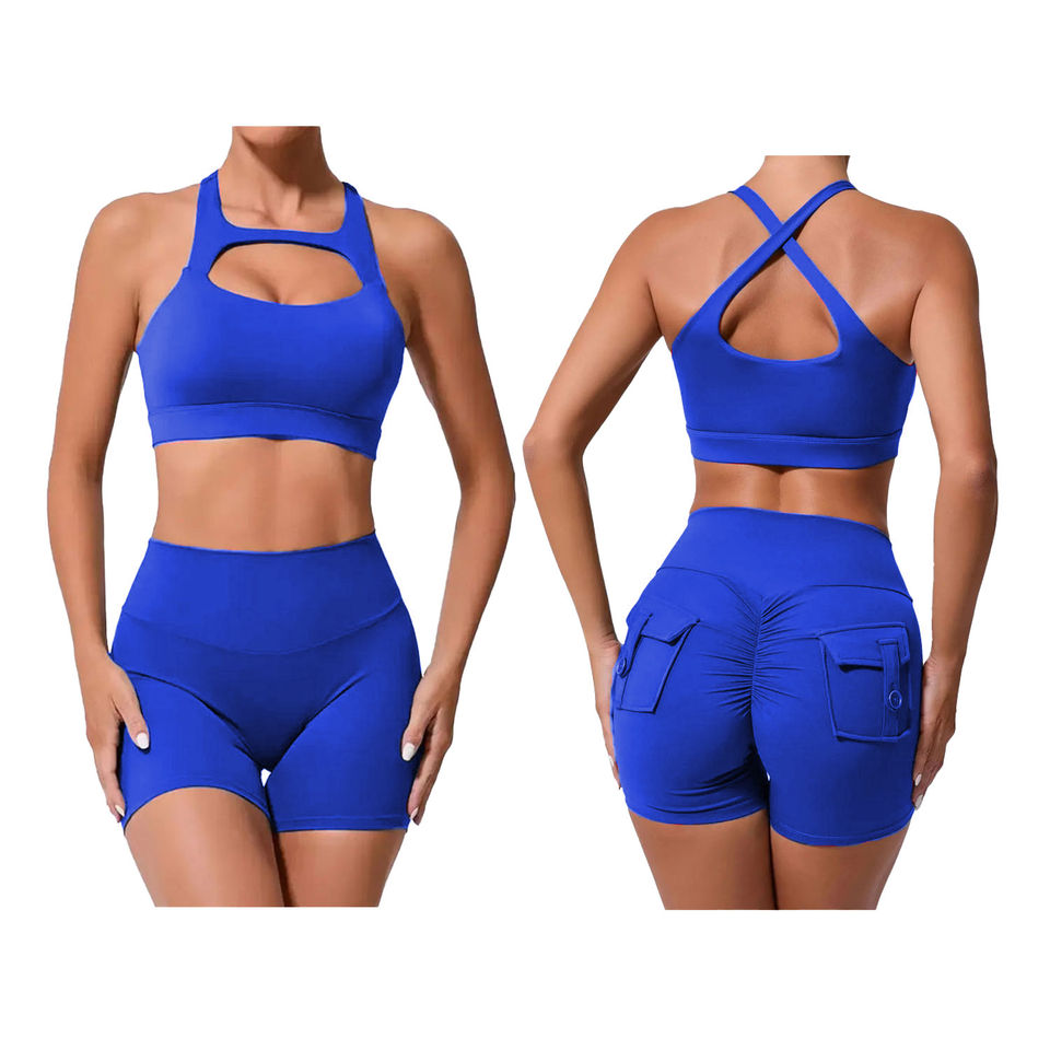 Fitness Yoga Set Diseño de patrón sólido Conjunto de 2 piezas Sujetador Pantalones cortos Ropa de gimnasio de invierno Estilo casual Material superior