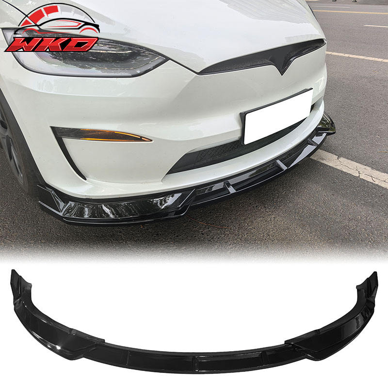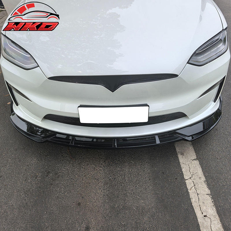 Compatible con Tesla Model X 22-25, estilo IKON, 3 piezas, alerón delantero para parachoques, negro brillante, accesorio exterior de alta calidad