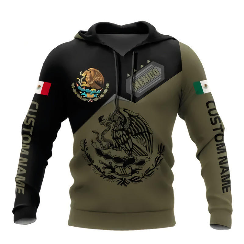 Fitspi Venta al por mayor México Camuflaje Impreso Escudo Armas Verde Camo 3D Sudadera con capucha Todo Imprimir Sudadera Pullover