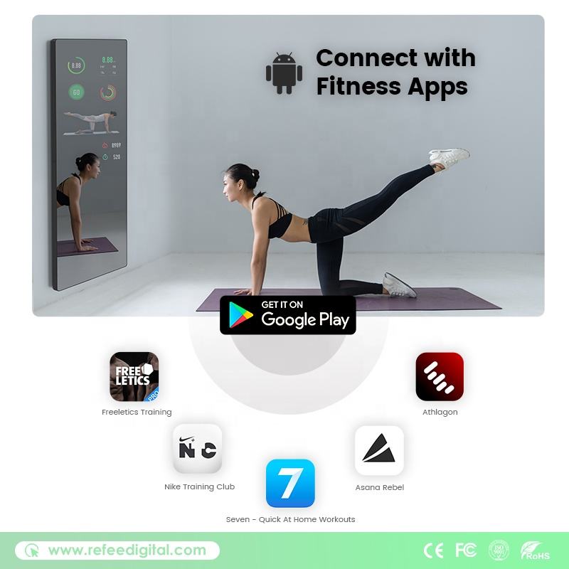 Espejo de Yoga Inteligente con Pantalla Táctil Android, Espejo de Fitness Digital con Pantalla LCD, Espejo Mágico para Ejercicios en Casa o Gimnasio