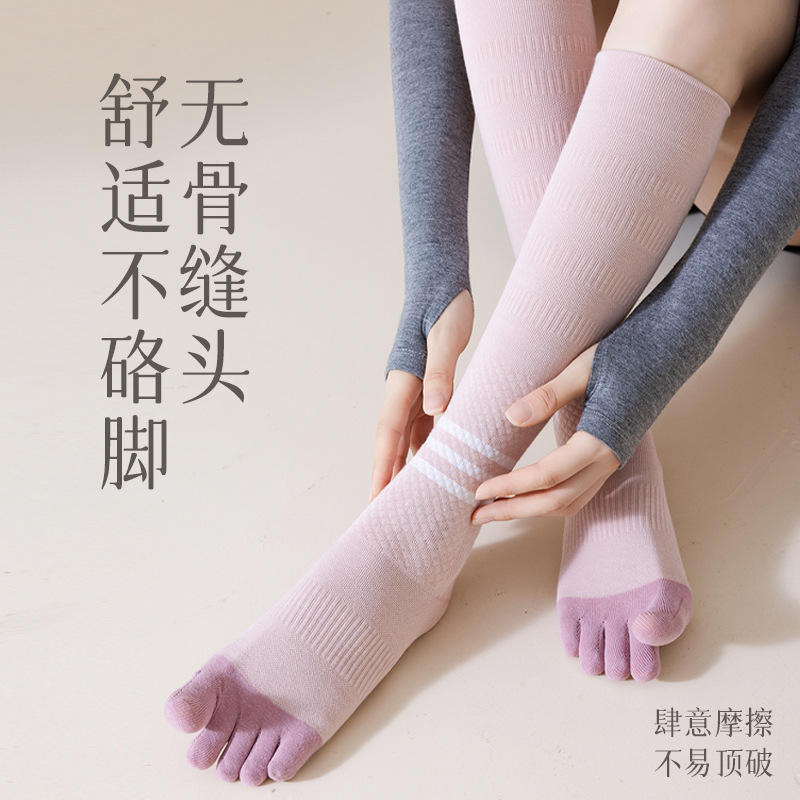 Five Finger Compression Socks For Women Cotton Sweat Absorbent Yoga Running Sports Long Socks Black Navy Blue Gray Pink White