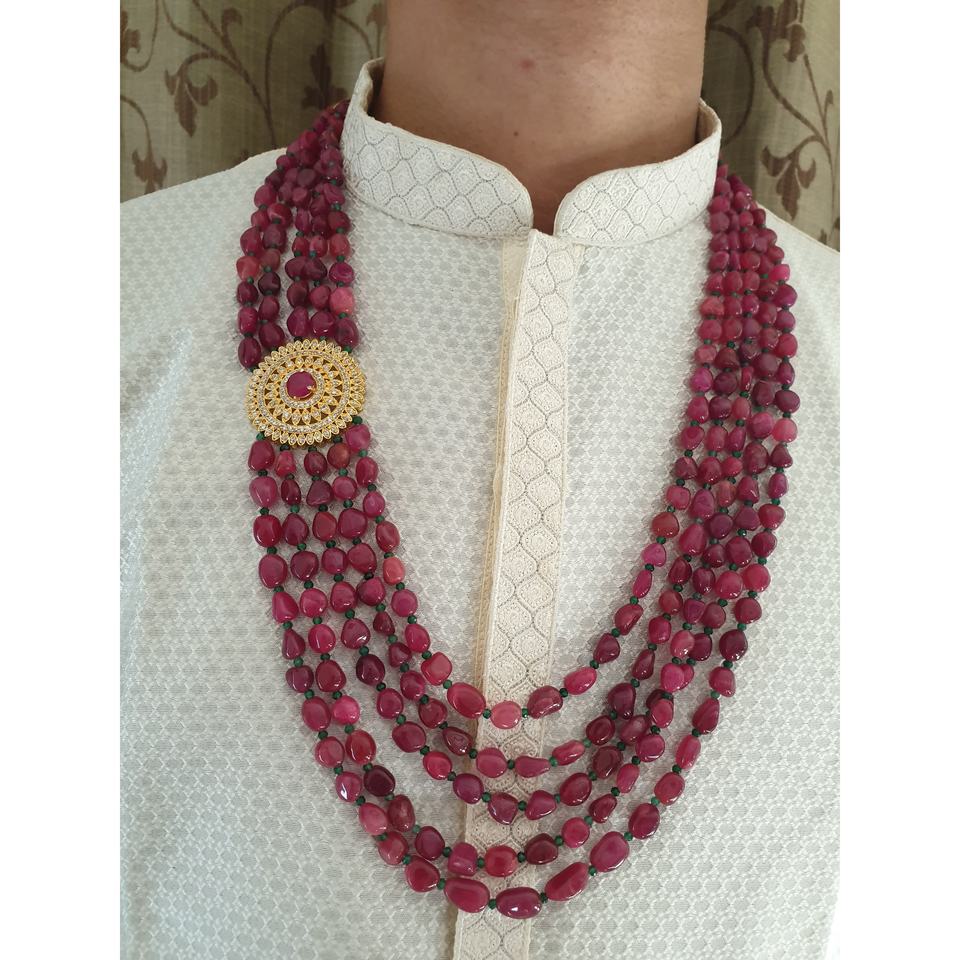 Collar de cuentas rojas de múltiples capas para hombre, joyería de boda tradicional para novio, Mala étnica india con broche dorado decorativo