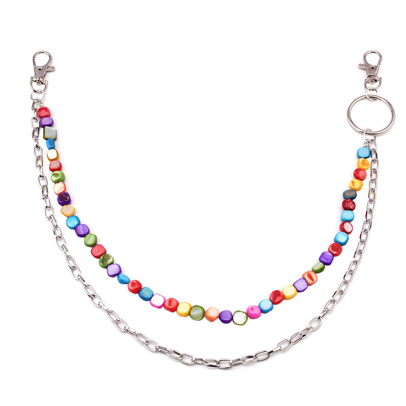 Cadena de cintura colorida con estrella de cinco puntas, de aleación de zinc, estilo playero, cadena corporal de un solo lazo, adorno retro para pantalones
