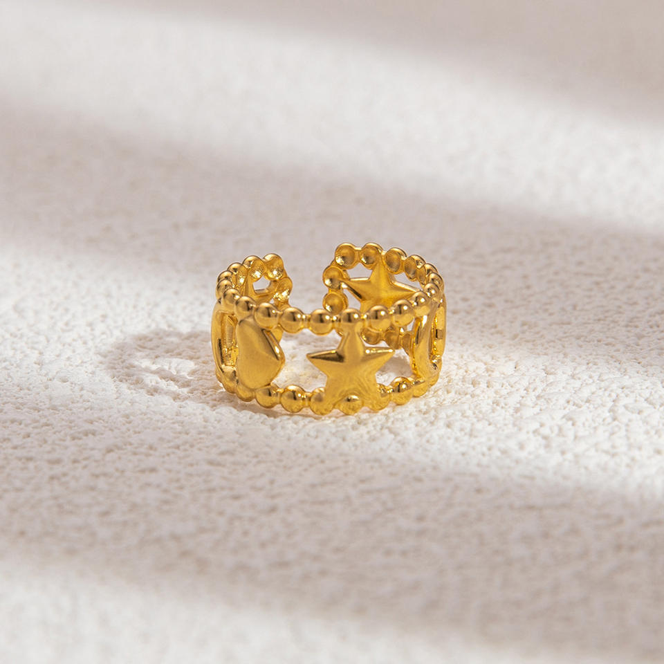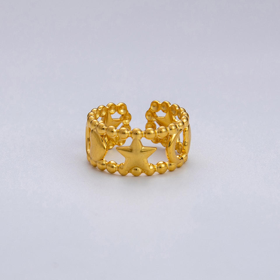 Anillo de Estrella de Cinco Puntas, Diseño Abierto Dorado, Joyería de Moda para Mujer, Regalo, Origen Yiwu JZ21174