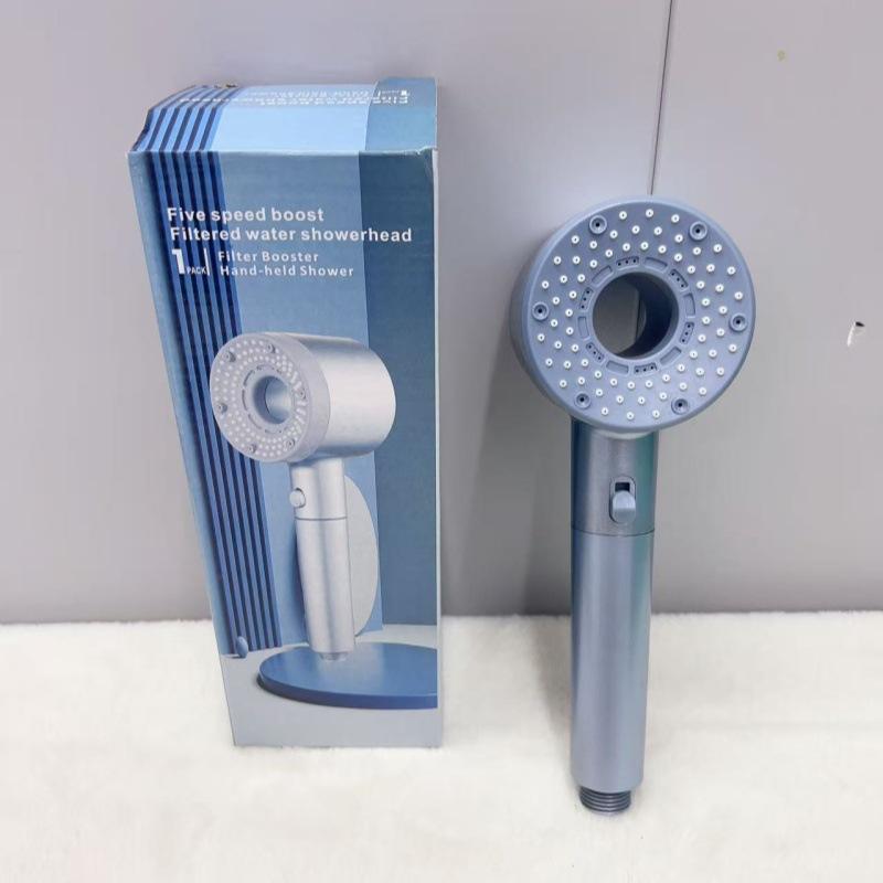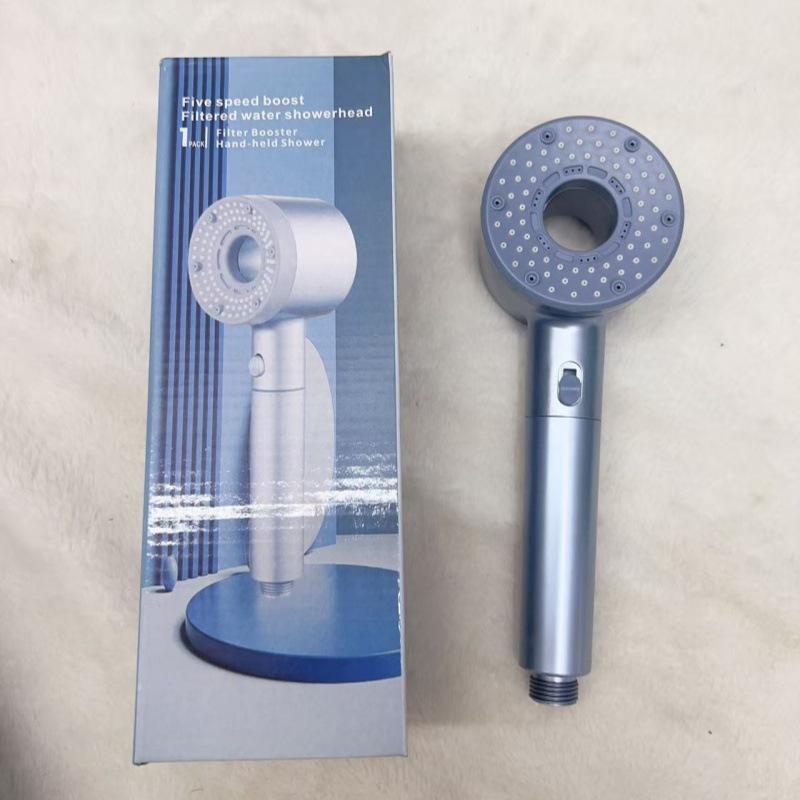 Cabezal de Ducha de Cinco Velocidades con Filtro, de Mano, Presión Ajustable, Flujo Turbo, Diseño Redondo