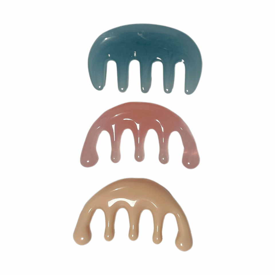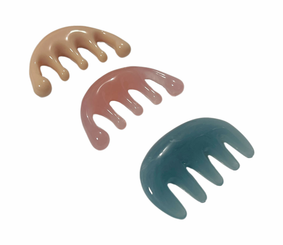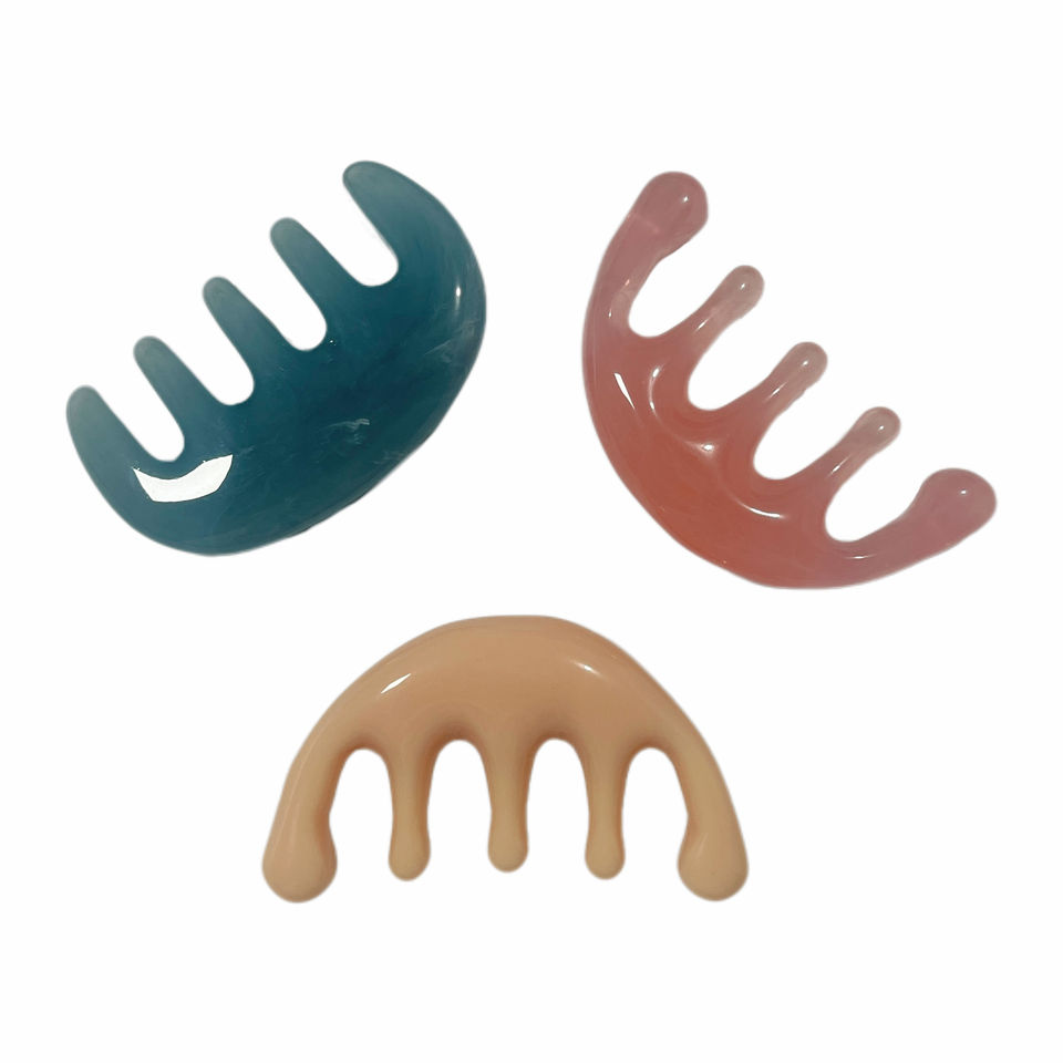 Peine de masaje de cuero cabelludo Meridiano de cinco dientes, cabeza de dientes anchos de resina, terapia de acupresión, peine para aliviar el estrés