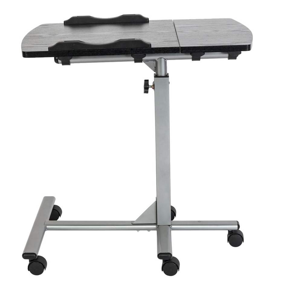 Escritorio de Computadora Extraíble Multifuncional de Cinco Ruedas para Uso Doméstico, Color Negro y Plateado, Modelo XH