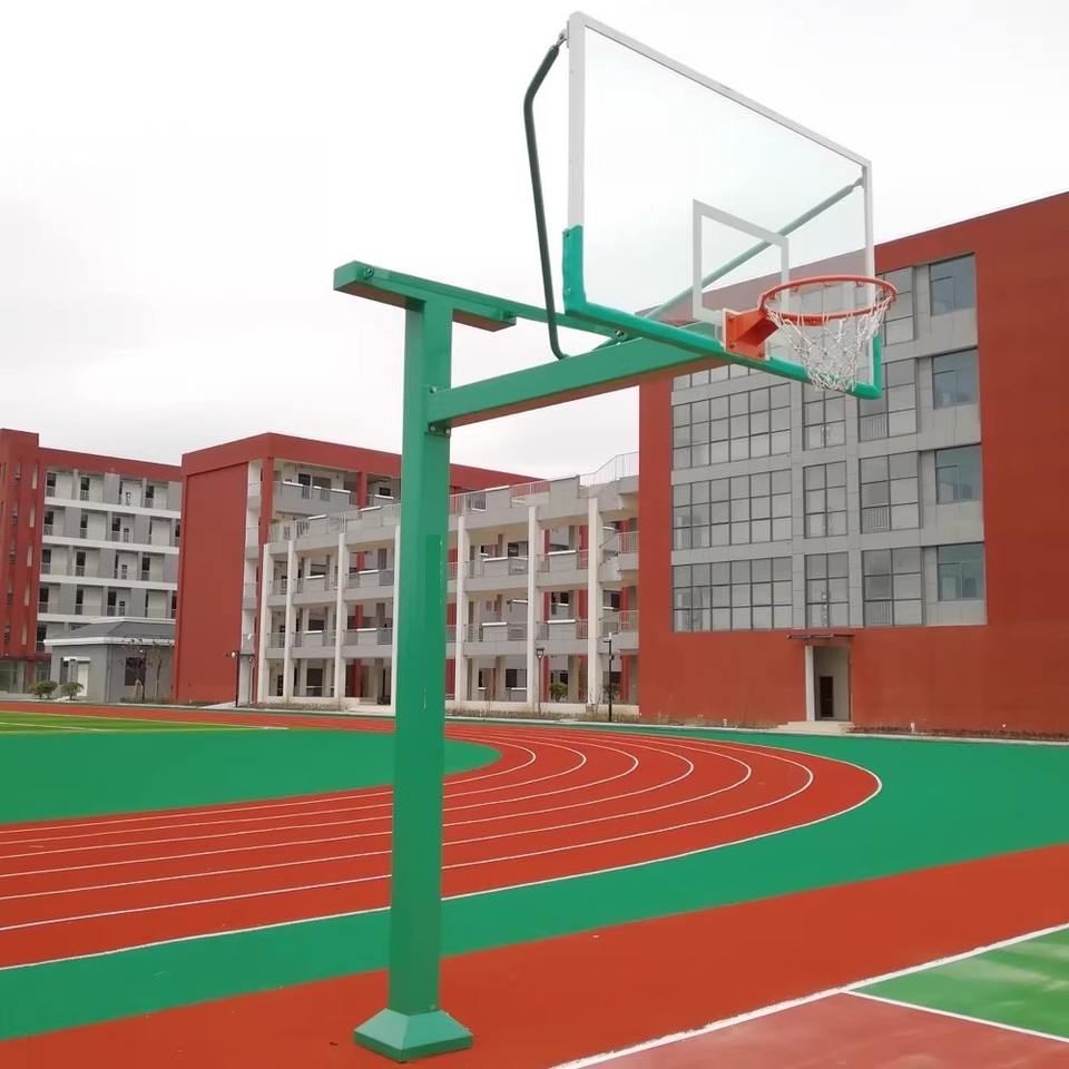 Aro de Baloncesto Fijo con Tablero de Vidrio Templado y Marco de Aluminio para Uso en Canchas Exteriores