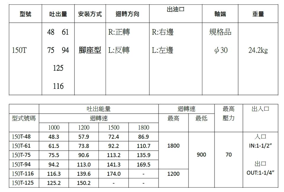 Bomba de paletas de aceite hidráulico de desplazamiento fijo 150T-61 montada en el pie 900-1800 Rpm para maquinaria de construcción sistema de energía hidráulica