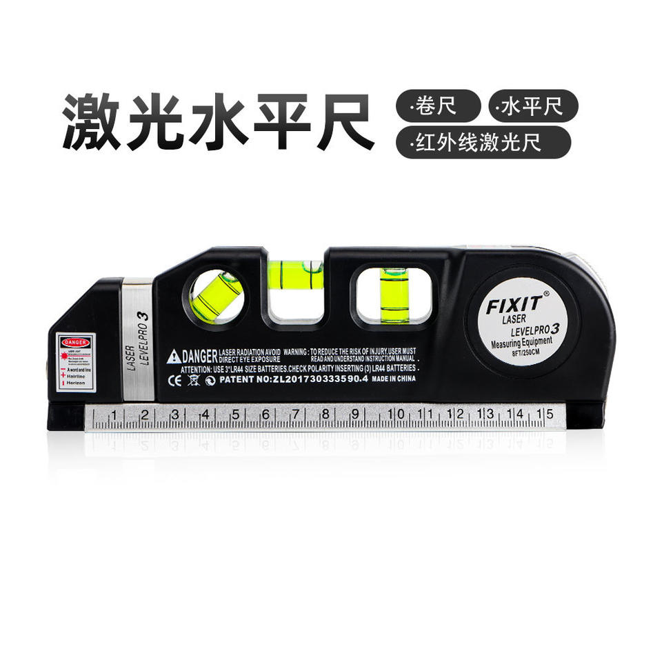 Nivel Láser Fixit Pro 3 con Cinta Métrica de 15 cm, Nivel de Burbuja y Puntero Láser para Bricolaje y Construcción
