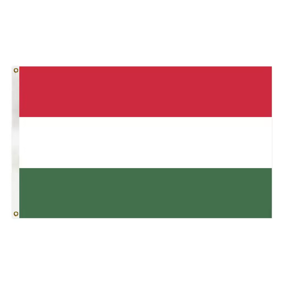Bandera Promoción directa de fábrica Venta 100% Poliéster Rojo Blanco Verde Hungría Bandera nacional Todos los países Bandera de 3x5ft