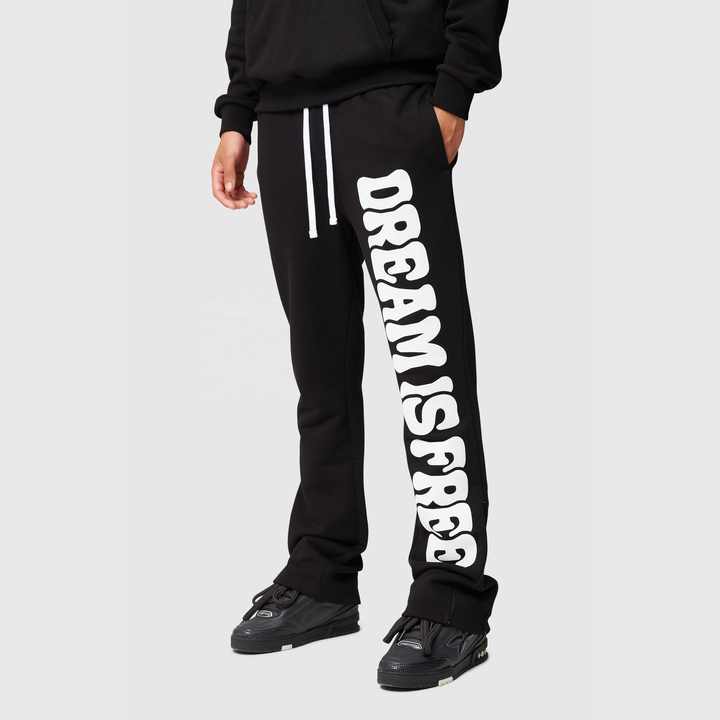 Pantalones acampanados personalizados de alta calidad pantalones acampanados pantalones de chándal, estilo de pantalón de hombre Pantalones de retazos apilados algodón polar Puff estampado