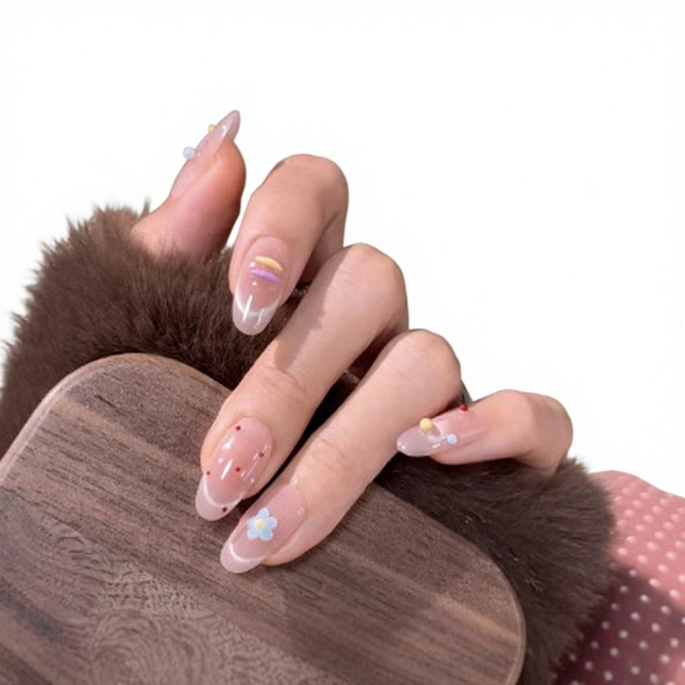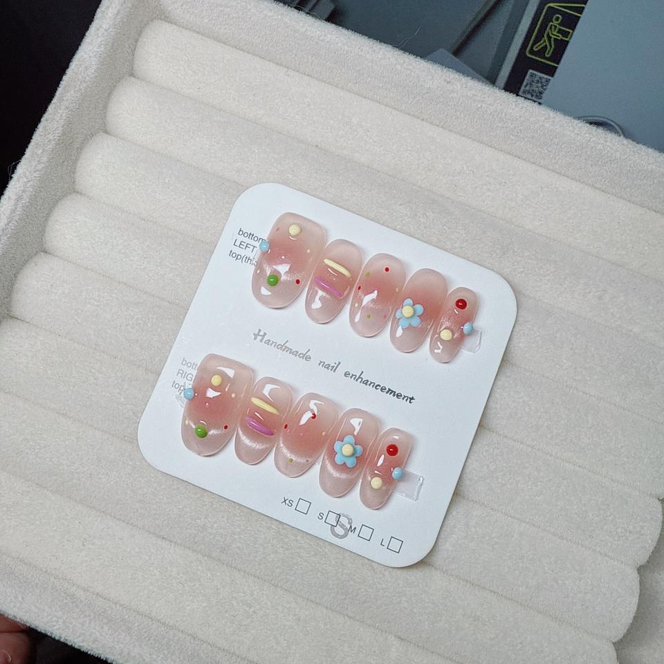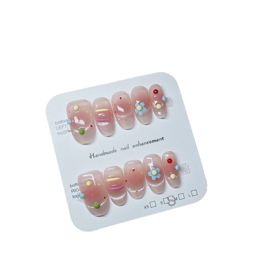 Uñas postizas de colores brillantes hechas a mano, estilo elegante y lindo de celebridad de Internet, para estudiantes, uñas cortas blancas estilo Spice Girl.