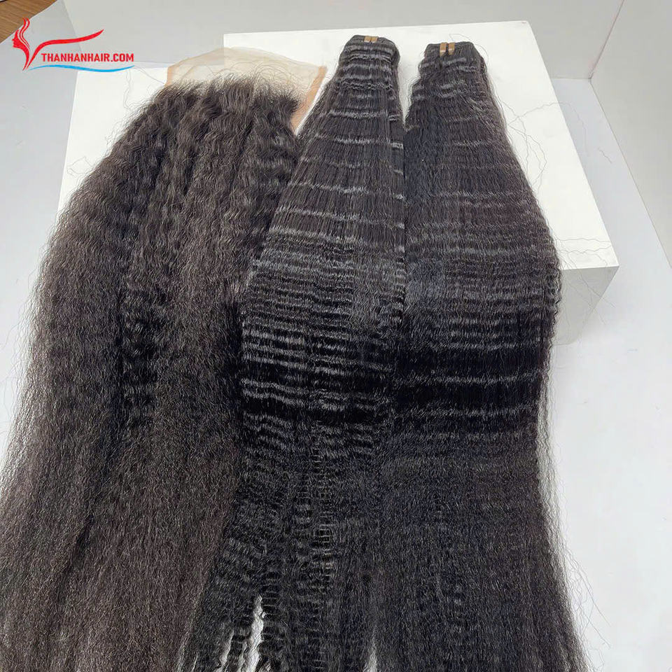 Flashsale Steam Kinky Curl Weft 100% Extensiones de cabello vietnamita Color negro Sin caída Precio al por mayor