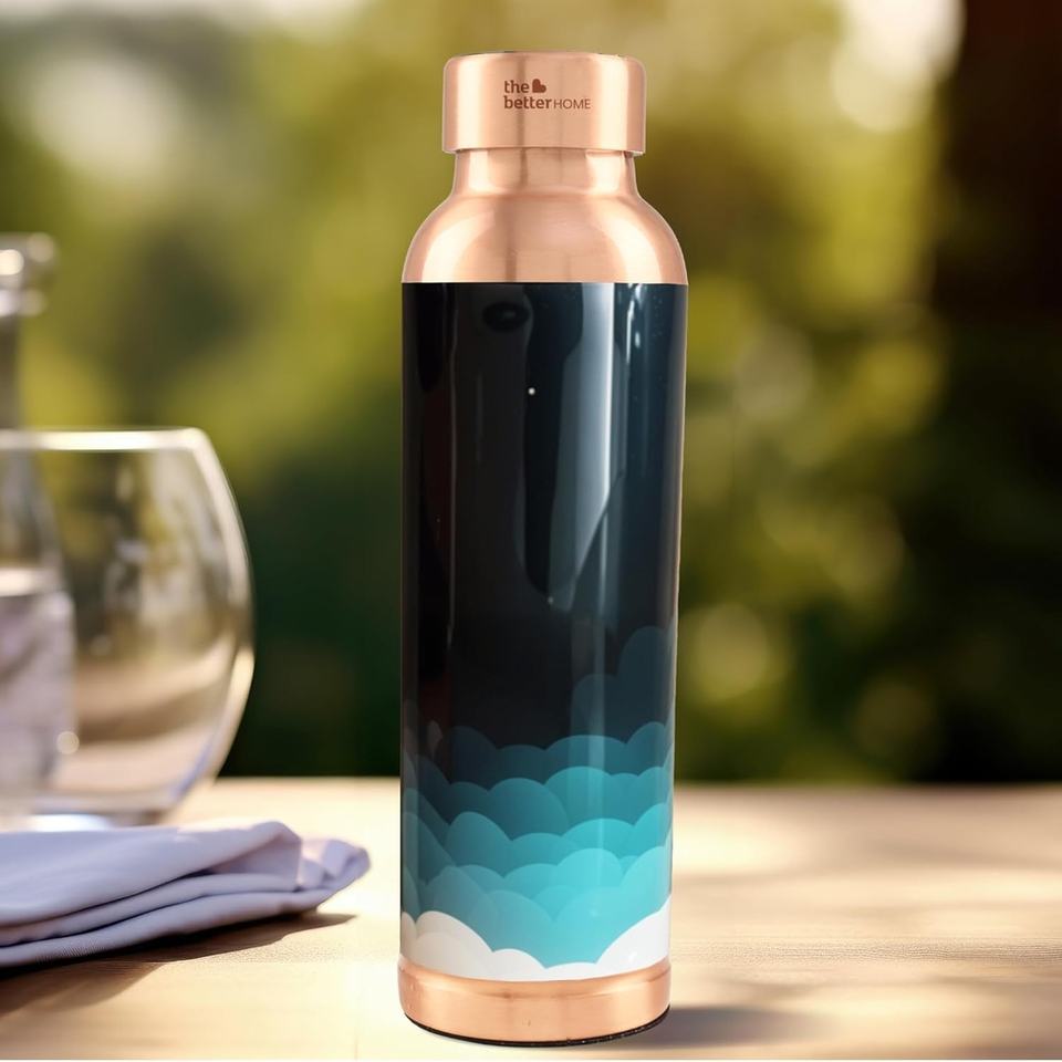 Frascos Ayurveda, botella de agua de cobre con hoja impresa, perfecta para Fitness, botella a prueba de fugas de cobre puro Natural, juego de regalo de Metal