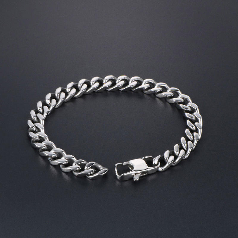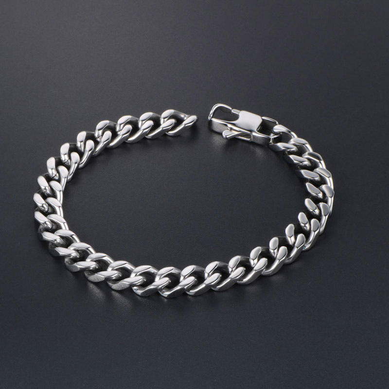Pulsera de cadena plana de acero de titanio para hombre, 21 cm, accesorio de joyería Hip Hop CE395