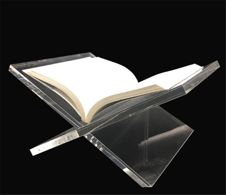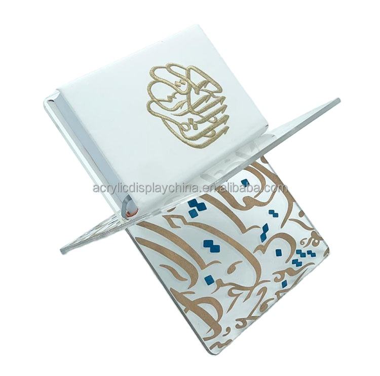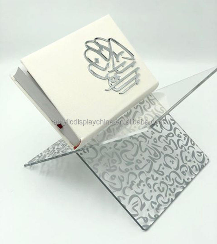 Embalaje de seguridad para soporte de libro de acrílico personalizado soporte de bandeja de revista de acrílico transparente abierto plano, soporte de libro de acrílico de sobremesa, soporte de Corán de acrílico, soporte de Corán de acrílico