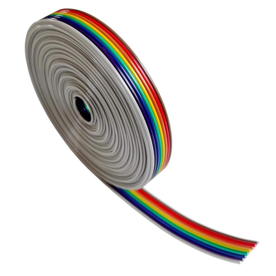 Cable Plano de 8 Hilos, 5 Metros, Color Arcoíris, Conector IDC, 28 AWG, Conductor de Cobre Aislado con PVC, 30VAC 250VAC