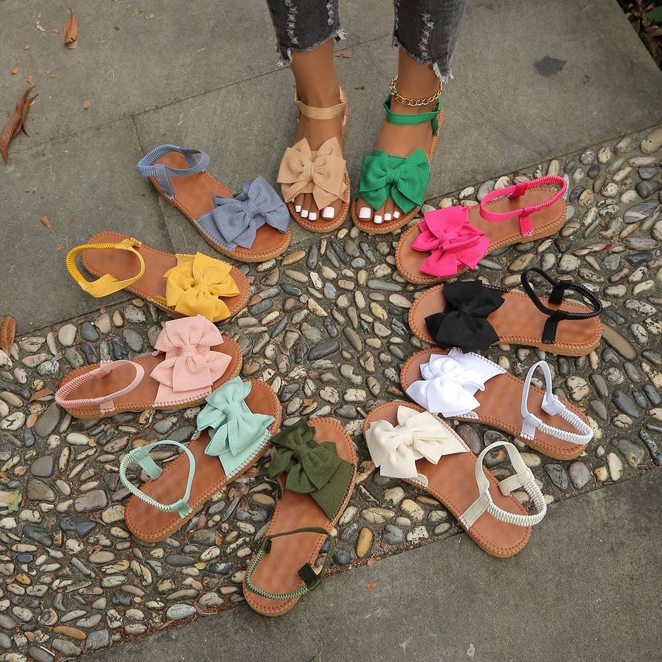 Sandalias planas vienen en muchos colores, novedad de verano 2025, sandalias de una línea con lazos, prendas de vestir de moda, Sandalias planas dulces