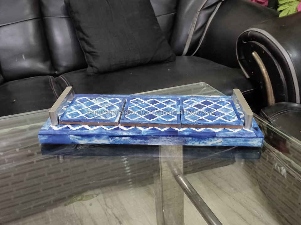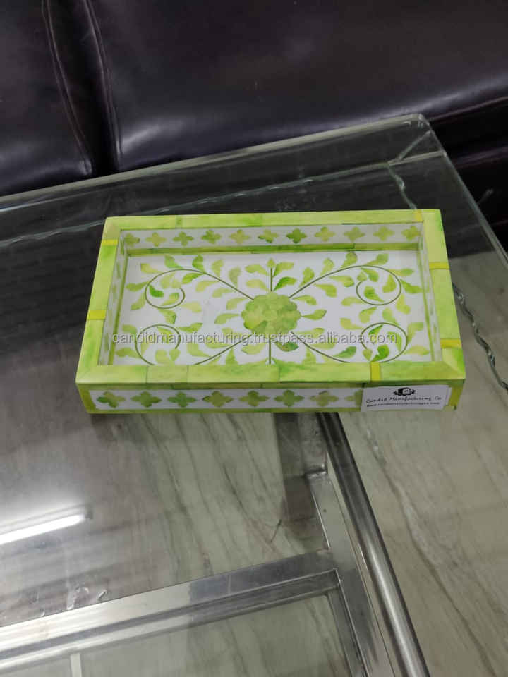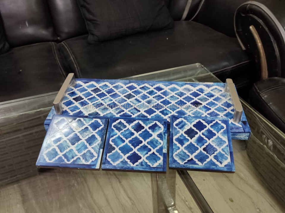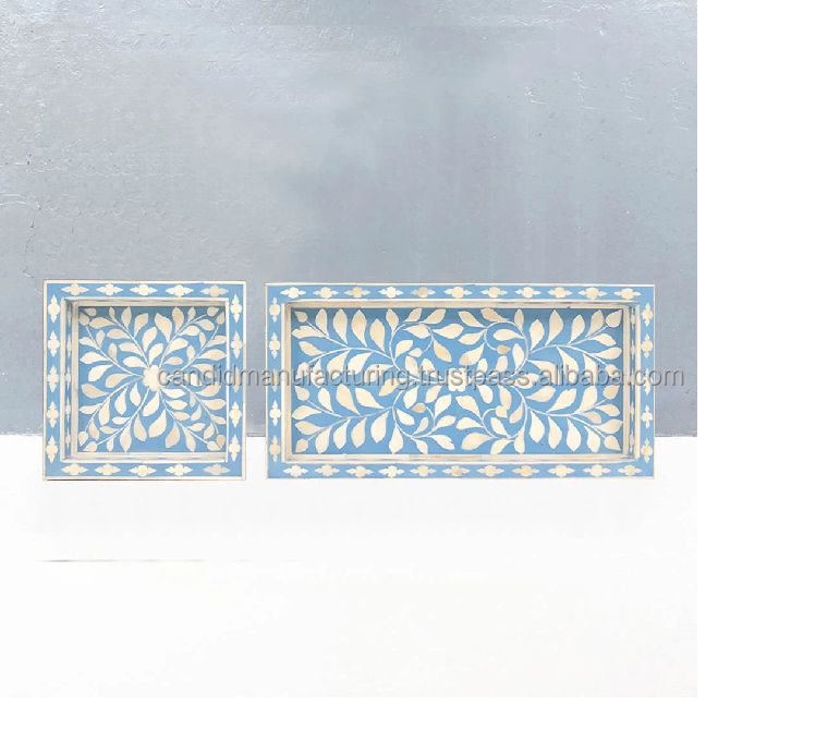 Bandeja plana ecológica con incrustaciones de hueso, juego de bandeja para quemador de incienso con incrustaciones de madreperla, posavasos incluido para incienso árabe Mubhkar