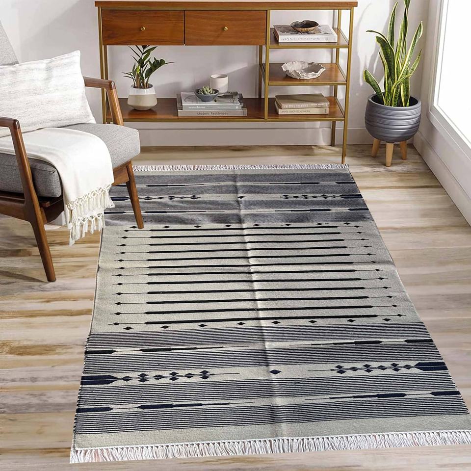 Alfombra a rayas de tejido plano Alfombra Dhurrie Mat Runner Kilim Hecho a mano en algodón para dormitorio o sala de estar
