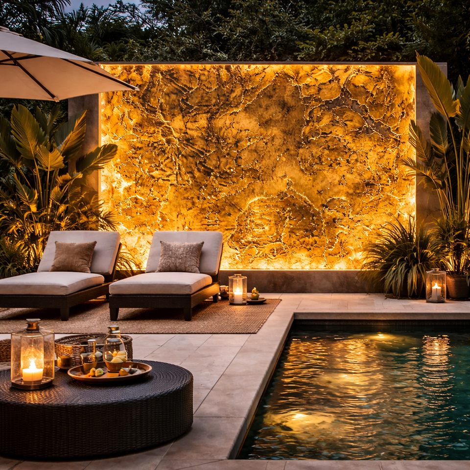 Lámina de Chapa de Mármol/Cuarzo Translúcido Marrón Claro de Flatstone Designs, Garantía de 5 Años, Moderna, Retroiluminada, para Paredes Interiores y Techos