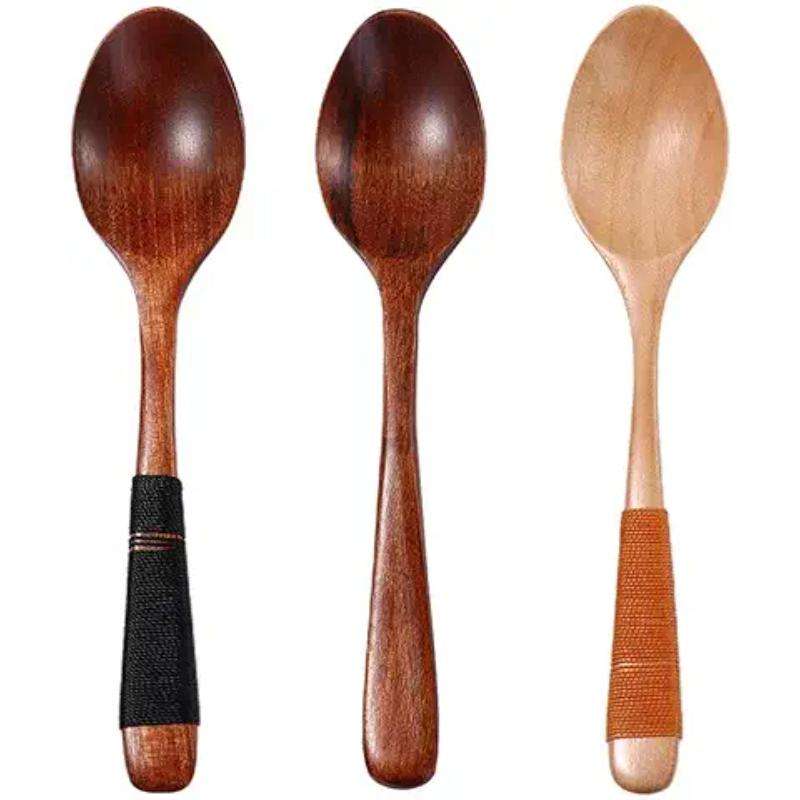 Cubiertos Utensilios de cocina Cuchara de madera Juego de cucharas de mesa de madera natural con cuerpo duradero y bordes seguros para todas las edades