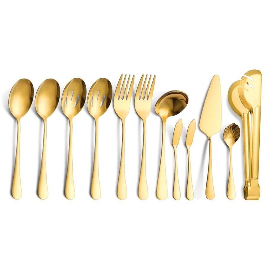 Juego de cubiertos de 13 cubiertos de acero inoxidable, mesa de cocina Ideal para uso doméstico en Hotel, cubiertos con acabado Chapado en Color dorado, mango de alta calidad