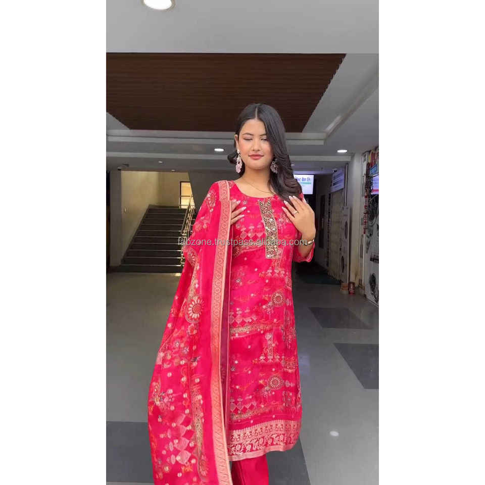 Presume del increíble color rojo de este traje en tus próximas festividades. La tela divina y lujosa con zari tejido da