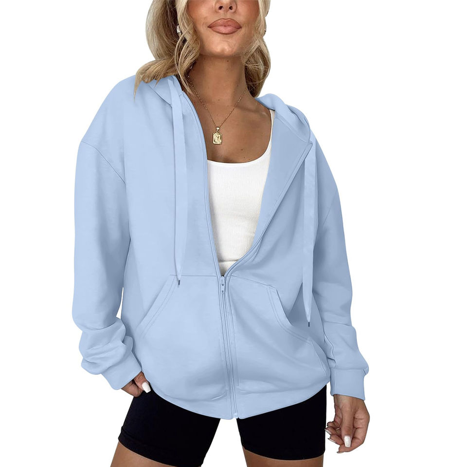 Sudaderas con Capucha Extra Grandes de Algodón con Hombros Caídos y Cremallera Completa para Niñas, 100% Algodón, Impresión Personalizada, Sudaderas con Capucha con Cremallera para Mujer